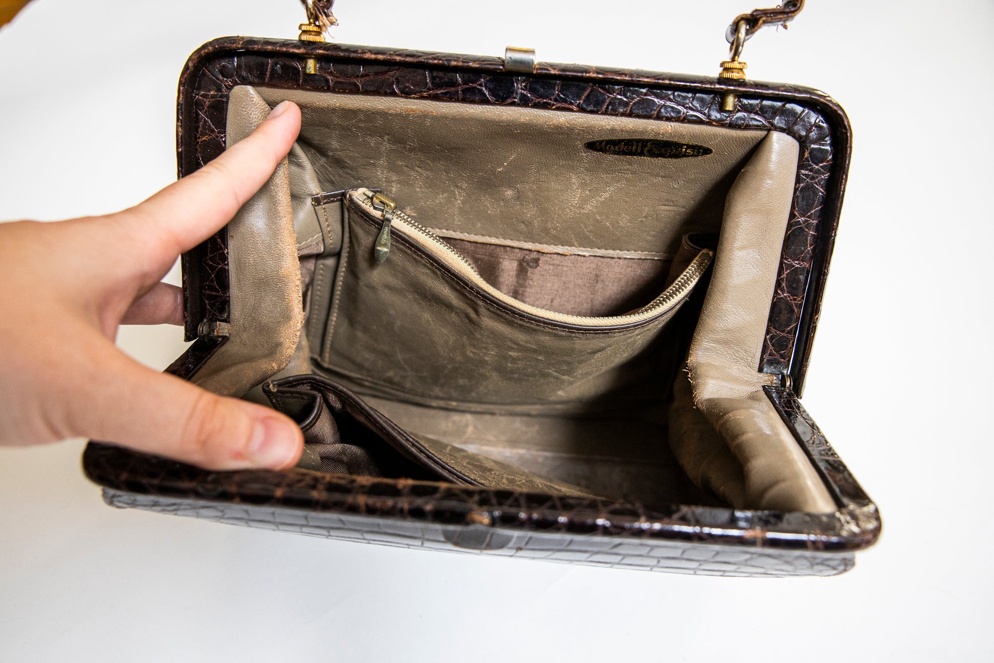 Vintage Brown Croc Leather Handbag